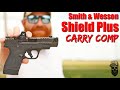 Constructed with a durable gray and black finish, the pistol incorporates a thumb safety for added security and night sights on the front for enhanced visibility in low light conditions. The slim profile and lightweight design make it comfortable to carry all day, while the high-quality materials and engineering ensure reliability and consistent performance. Whether for personal defense or professional use, the Smith & Wesson M&P Shield Plus Carry Comp delivers the reliability, safety, and precision needed for confident handling.